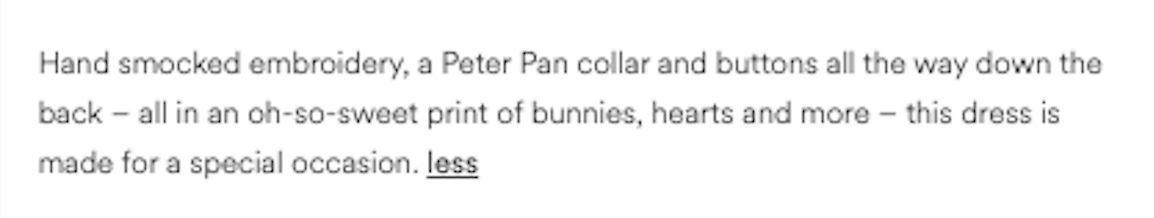 Product descriptions in the brand’s playful tone of voice for womenswer, childrenswear, accessories and jewellery.